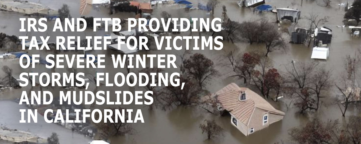 IRS and FTB providing tax relief for victims of severe winter storms, flooding, and mudslides in California