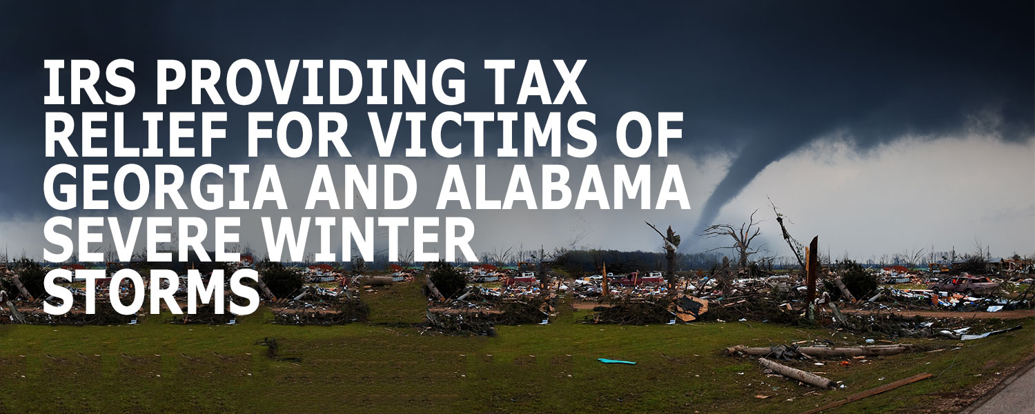 The IRS announced on January 19, 2023 that Storm victims in parts of Georgia and Alabama now have until May 15, 2023 to file various federal individual and business tax returns and make tax payments.