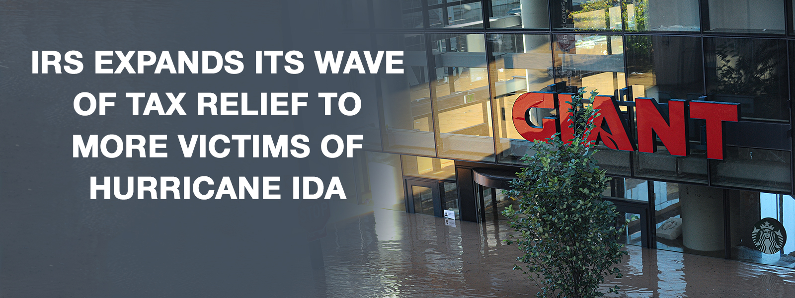Following the October 30, 2021 disaster declaration by the Federal Emergency Management Agency (FEMA), victims of Hurricane Ida in parts of Connecticut now have additional time-until January 3, 2022 to file various individual and business tax returns and make tax payments. Currently, the expanded relief applies to Fairfield and New London counties, including the Mashantucket Pequot Tribal Nation and the Mohegan Tribal Nation. Any jurisdiction added to the October 30th FEMA declaration will automatically receive the expanded IRS relief. Previously, the IRS had provided special relief to the entire state of Mississippi, generally postponing various tax-filing and tax-payment deadlines until November 1, 2021.