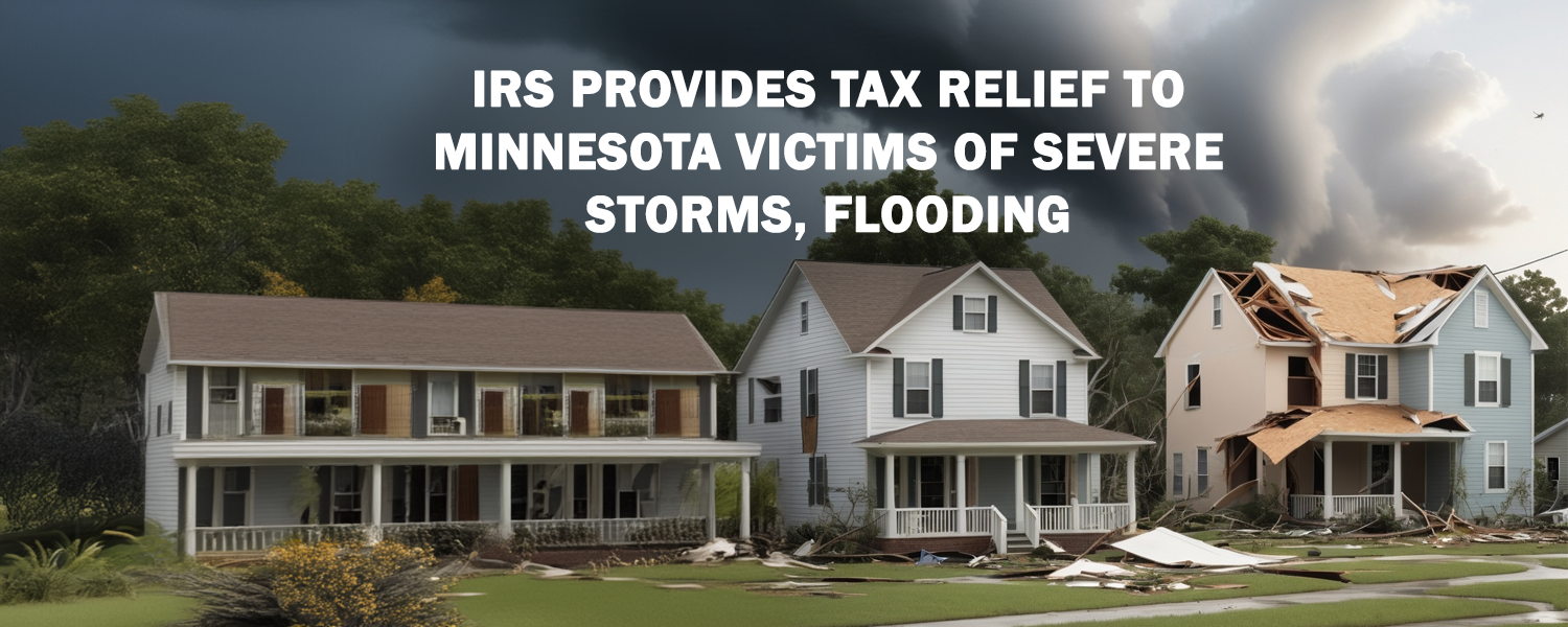 The IRS announced on August 12, 2024 tax relief for individuals and businesses in 25 Minnesota counties affected by severe storms and flooding that began on June 16, 2024 now have until February 3, 2025, to file various federal individual and business tax returns and make tax payments.