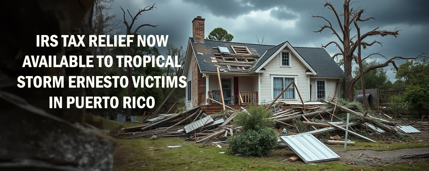The IRS announced on August 23, 2024 tax relief for individuals and businesses in Puerto Rico affected by Tropical Storm Ernesto that began on August 13, 2024 now have until February 3, 2025, to file various federal individual and business tax returns and make tax payments.