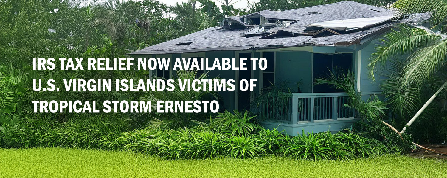 The IRS announced on August 28, 2024 tax relief for individuals and businesses in the U.S. Virgin Islands affected Tropical Storm Ernesto that began on August 13, 2024 now have until February 3, 2025, to file various federal individual and business tax returns and make tax payments.