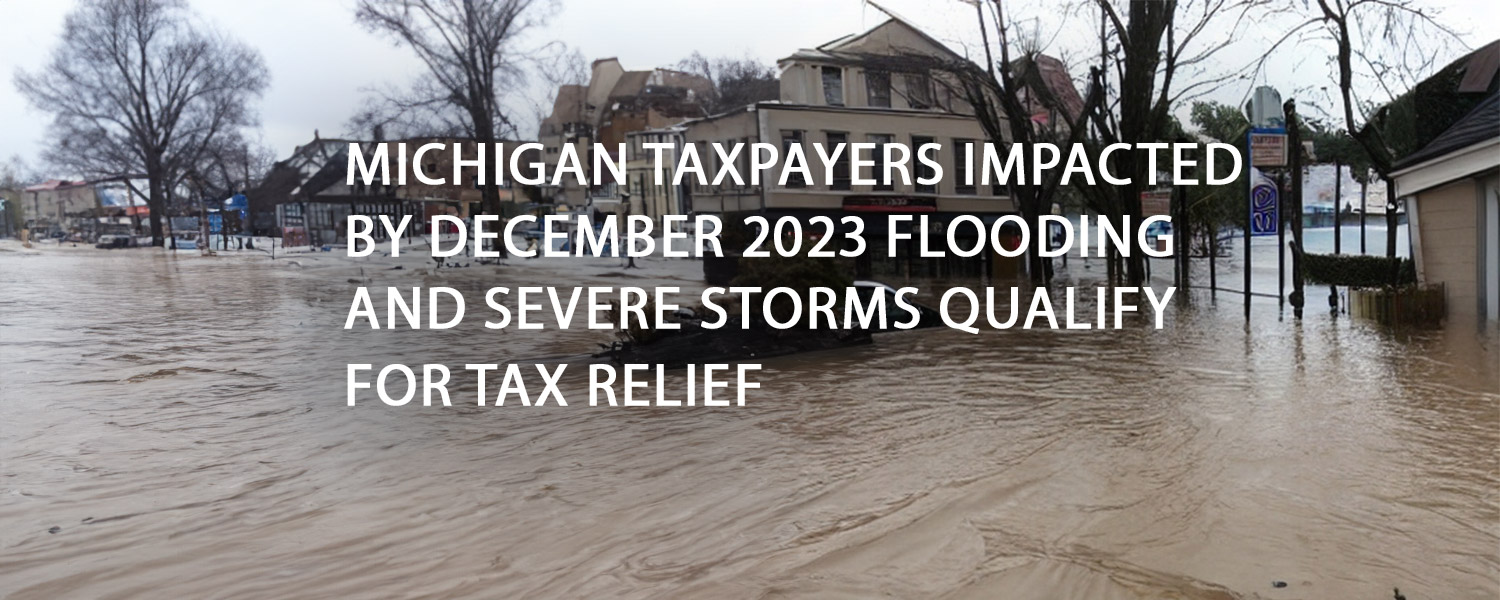 The IRS announced on February 15, 2024 that individuals and businesses affected by severe storms, tornadoes and flooding that began on August 24, 2023 in parts of Michigan now have until June 17, 2024, to file various federal individual and business tax returns and make tax payments.