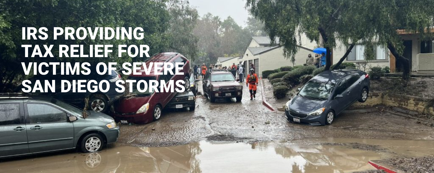 The IRS announced and the FTB announced on February 27, 2024 that individuals and businesses affected by severe storms and flooding that began on January 21, 2024 in parts of California now have until June 17, 2024, to file various federal individual and business tax returns and make tax payments.