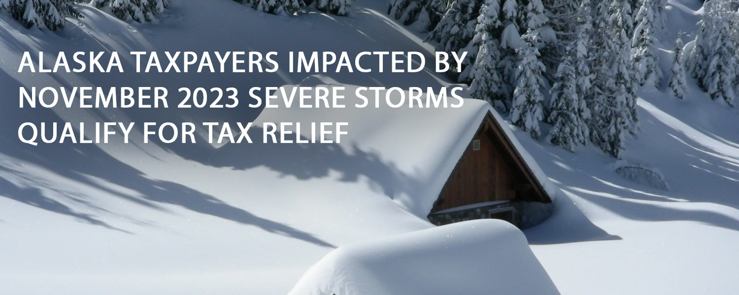 The IRS announced on March 25, 2024 that individuals and businesses affected by severe storms, landslides and mudslides that began on November 20, 2023 in parts of Alaska now have until June 17, 2024, to file various federal individual and business tax returns and make tax payments.