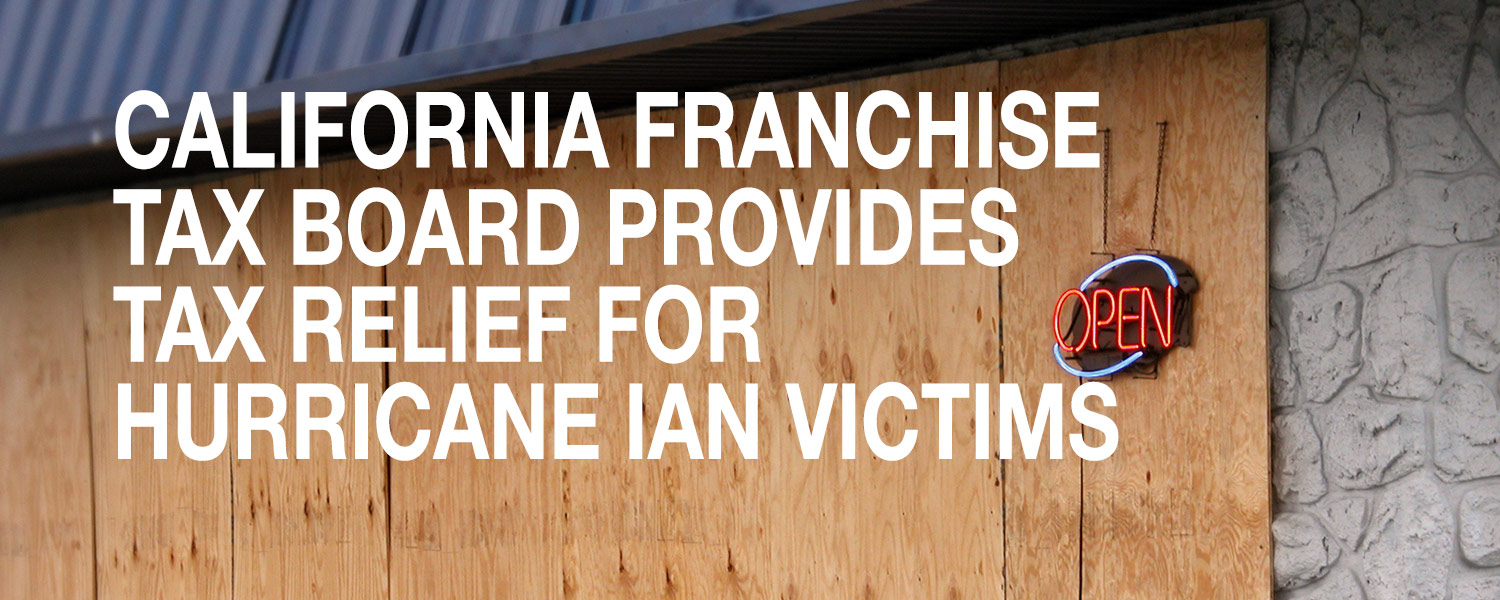 For California – Currently, relief is available to affected taxpayers who live or have a business anywhere in Colusa, El Dorado, Glenn, Humboldt, Los Angeles, Marin, Mariposa, Mendocino, Merced, Monterey, Napa, Orange, Placer, Riverside, Sacramento, San Bernardino, San Diego, San Joaquin, San Luis Obispo, San Mateo, Santa Barbara, Santa Clara, Santa Cruz, Solano, Sonoma, Stanislaus, Sutter, Tehama, Ventura, Yolo, and Yuba counties.