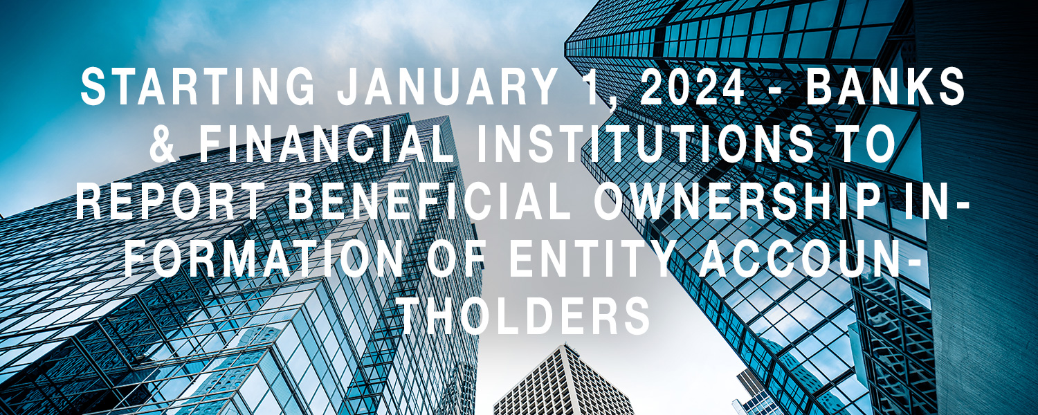 Starting January 1, 2024 – Banks & Financial Institutions To Report Beneficial Ownership Information Of Entity Accountholders